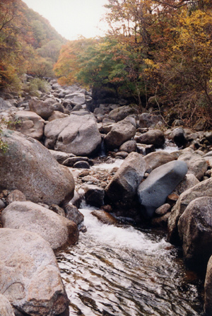 3분여를 걸으니 계곡이 나온다