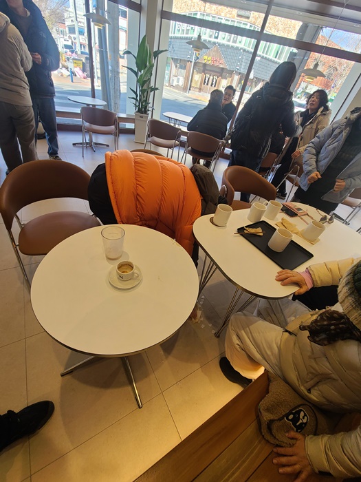 식사 후 카페로 왔는데 우리 '산돌이'는 일을 저질러요