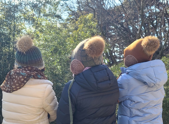 뒤퉁수만 보이는 솔방울 단 이 세 다람쥐들의 정체를