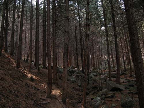 중인리 방향 코스중 일반적으로 가장 많은 등산객이 오르는 코스로 등산로가 아주 쾌적함