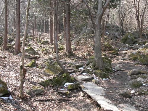 연분암 약수로 목을 축인 다음 서서히 경사도가 심해지는 너덜길을 잡아채기 시작한다