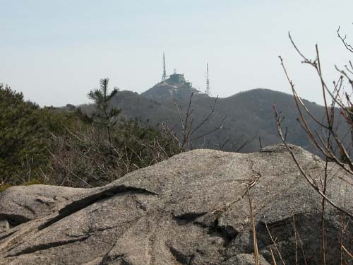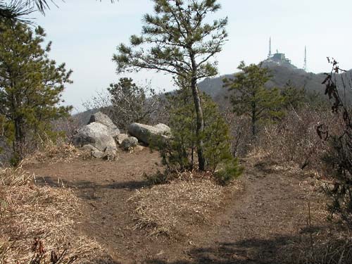 바위가 있어 앉아 쉴 수도 있고 흉물스런 모악산의 정상이 바로 앞에 보인다