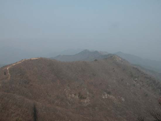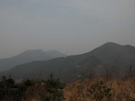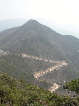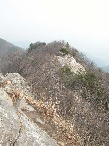 여기서 40여분간은 편안한 야산을 오르내리는 기분으로 전진을 하다가 호흡이 가다듬어 질 무렵 10-20분 바싹 고도를 높이면 구이 상학에서 올라오는 오른쪽 길과 만난다 여기까지는 거의 인적이 없는 산행이다
