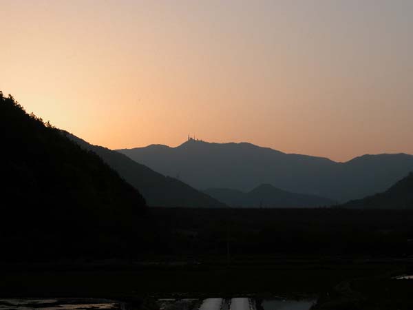 아침 05:45경 쌍룡마을에서 본 모악산 (하산장소에 차량을 두고 오려고 가면서...)