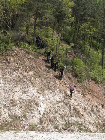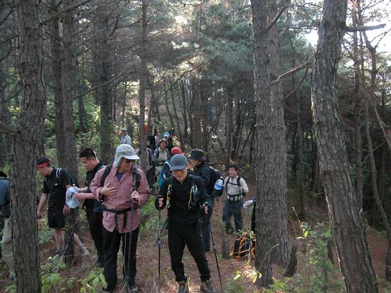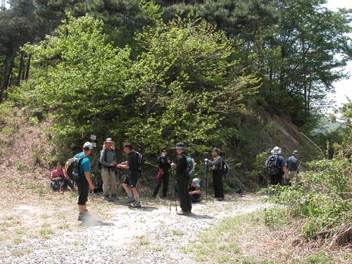 14:07경 마지막 남은 구성산을 오르기 위해 절개지 안부로 내려오는 일행들...