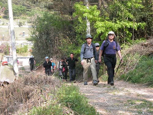 14:22경 구성산의 선두 그룹 (좌에서부터 ‘솔주’ ‘뫼가람’ ‘최대장’)