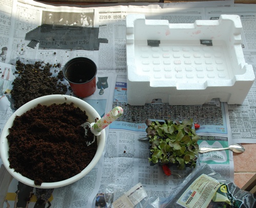 재활용 쓰레기장에서 스치로폼 딸기 용기도 하나 주워 온다.