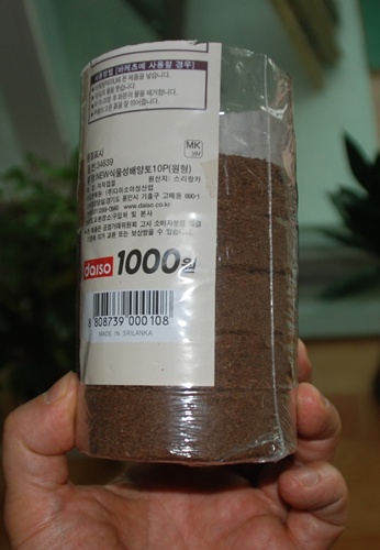 다이소에서 천 원에 사 온 고체 흙, 하나만 꺼내어 물에 담가놔도 흙이 1리터가 생긴다.