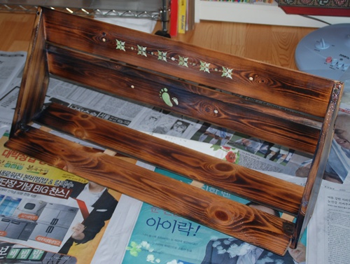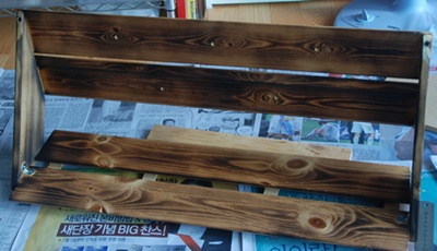 선반 붙일 벽면과 비슷한 분위기를 내려니 불로 구울 수밖에 없다