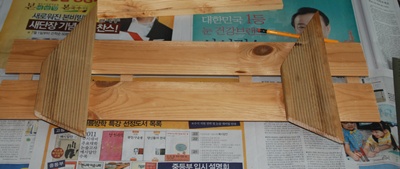 언젠가 주워 온 침대 매트리스 받침목과 MDF 쪼가리로 밑판부터 만들고...