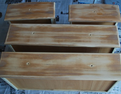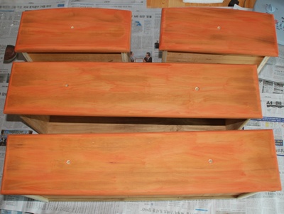 서랍은 우드스테인(Crimson Rouge)으로 살짝 한 번만.....
