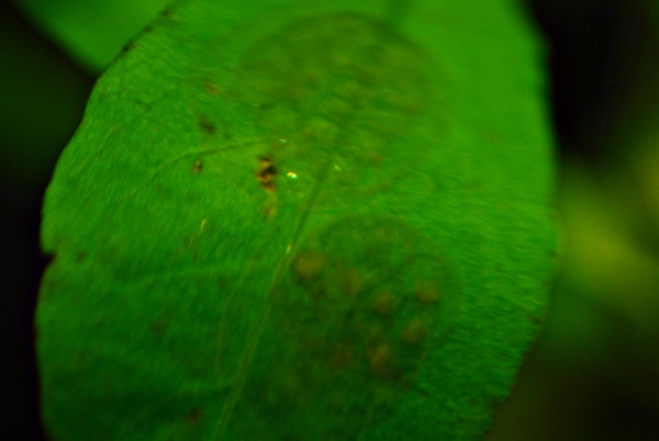 근데 잎에 뭐가 묻어 있어 자세히 보니 알을 까 놨다.