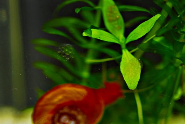 그러다가 어항을 전체를 자세히 보니 어항 벽이며 이파리 여기저기에 부지기로 붙어있다