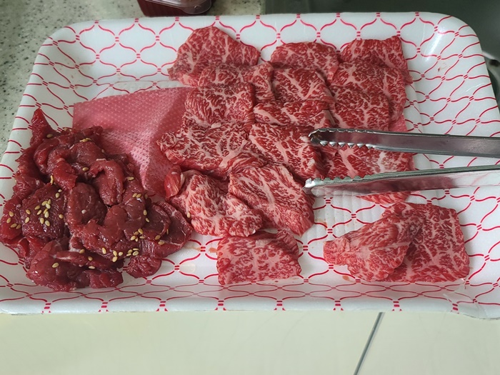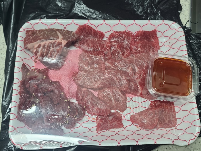 보아하니 고기를 시켜 먹다가 남은 것을 포장해 달라해서 가져가려 한 것 같다.