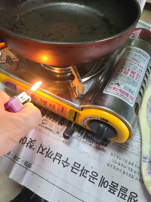 렌지도 고장나서 라이터로 불을 붙여야 하네